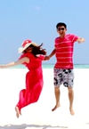 2、水屋浮潜:水屋一面朝主岛(日出房),一面朝大海(日落房),我住在日出房里,这一片全是死珊瑚和礁石,浮潜没什么意思;在岛上认识了一对北京夫妇,住在我们对面的日落房,我们一直和他们一起到他们外面的海里浮潜,在离水屋大概50~100米的地方,珊瑚非常漂亮,建议中午以后去,因为那一片海非常浅,我们有一天上午去的,还没涨潮,太浅了,基本没法游,下午4点左右涨潮了去,非常好。最好借救生衣,下午涨潮的时候风浪比较大,会把你带到很偏的地方,我们往前游了100米左右,被浪带歪了至少300米,没有救生衣,如果潜水技术不是特别好的话,游回来体力会有问题。